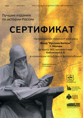 Фонд «Русские Витязи» награжден Сертификатом номинанта Общероссийского конкурса «Лучшие издания по истории России» в номинации «Альбомы и фотоальбомы» за книгу А.В. Кибовского «800 неизвестных».